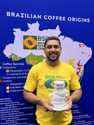 Dionatan de Almeida é o atual vencedor do Campeonato Brasileiro de Cup Tasters, competição realizada como ação do projeto “Brazil. The Coffee Nation”, desenvolvido pela BSCA em parceria com a ApexBrasil, o que lhe conferiu o passaporte para ser o embaixador dos cafés do país na disputa mundial.