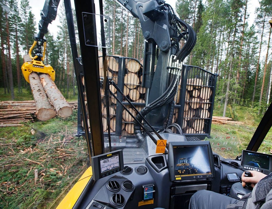 ðForwarder: originalmente fabricados no Canadá e aprimorados na Escandinávia, os Forwarders são máquinas articuladas, com suspensão da plataforma de carga sobre o chassi traseiro e capacidade de carga variando de 5.000 a 25.000 kg e potência que varia de 95 kW a 230 kW, além de uma grua hidráulica usada no carregamento e descarregamento da própria máquina. Executam a extração de madeira da área de corte para a margem da estrada ou pátio intermediário.
