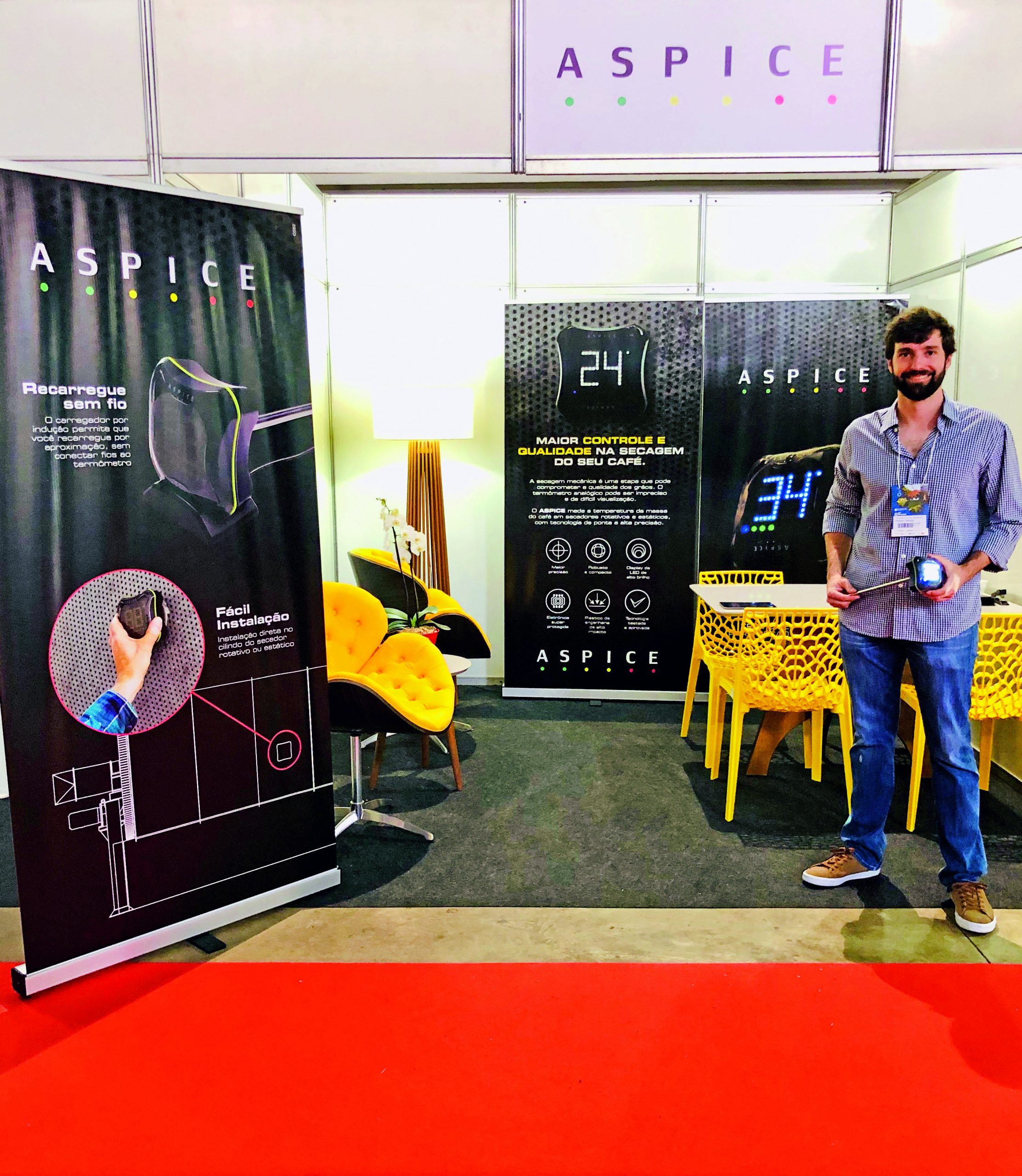 O Aspice esteve presente pela primeira vez no 27° Seminário do Café, com o objetivo de apresentar o que há de melhor em tecnologia de ponta e alta precisão para a cafeicultura. “Trouxemos um conceito novo em termômetro para este mercado, especialmente para secador rotativo. Trata-se de um termômetro digital, preciso, robusto. O Aspice é o perfeito substituto para o termômetro analógico”, conta Philippe Camargo, CEO da empresa Aspice.