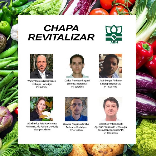 A partir de janeiro de 2023, a Associação Brasileira de Horticultura contará com novos dirigentes. No dia 10 de novembro de 2022, a chapa Revitalizar, que concorreu com a chapa Integração, foi anunciada ganhadora da eleição ocorrida em outubro último. Com esse resultado, a chapa capitaneada pelo pesquisador e chefe-geral da Embrapa Hortaliças Warley Marcos Nascimento foi a escolhida para dirigir a entidade nos próximos quatro anos (2023 a 2026).