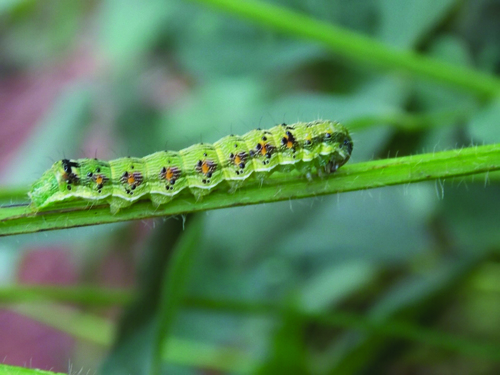 O período de incubação do ovo da praga dura, em média, três dias. Após a eclosão do ovo, a lagarta apresenta-se no primeiro e no segundo sub estágio. Elas são pouco móveis nas folhas, desta forma, o nível de dano é baixo.