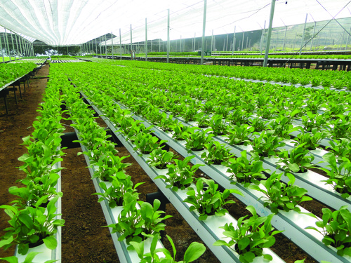 O sistema de fertirrigação inteligente, ainda uma novidade no cultivo hidropônico da rúcula, permite a redução da mão de obra e de falhas humanas na elaboração da solução nutritiva, mantendo estáveis ao longo do dia os níveis de EC e pH ideais para o cultivo.