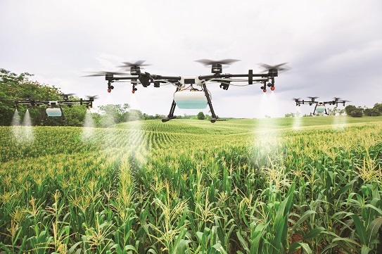 Agriculture drone fly to sprayed fertilizer on the sweet corn fields