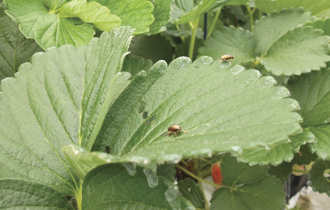 Os coleópteros são pragas que têm preocupado os produtores de morango, pois são capazes de causar grande destruição de materiais vegetais. Em pequenas populações, atacam principalmente as folhas, mas com o aumento das populações atacam flores e frutos. Os coleópteros são insetos que possuem ciclos de vida bem delimitados, desta forma, o estágio de adulto, quando ocasionam os principais danos, ocorre em épocas bem específicas do ano.