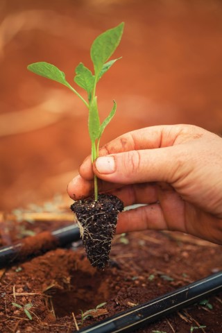 A técnica pode ser implantada no tratamento das mudas. Faz-se uma rega das bandejas com extrato de algas, composto de microrganismos e aminoácidos, com o objetivo de auxiliar no desenvolvimento radicular, diminuir o estresse pós-transplante e prevenir doenças radiculares.
