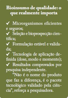 Para Mariangela, o conceito que realmente faz sentido é o de bioinsumo de qualidade, que envolve muito mais do que a escolha de uma bactéria ou fungo.