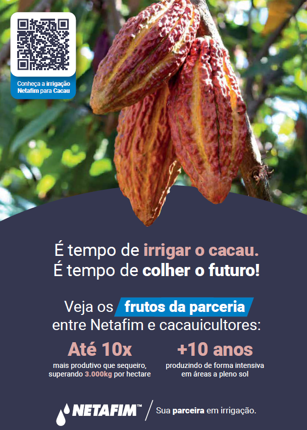 As metas são ambiciosas. Até 2030, a Netafim pretende alcançar 50 mil novos hectares de cacau irrigado no Brasil, em parceria com distribuidores certificados responsáveis pelo suporte em campo e no pós-venda.