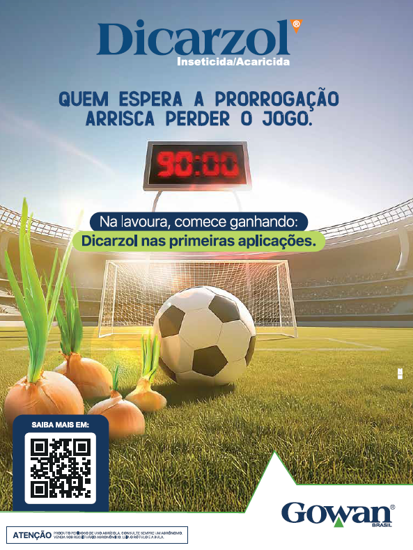 Fazendo uma analogia simples e eficaz, o Dicarzol é como o craque que não pode ficar no banco: ele precisa estar sempre em campo para garantir a vitória do produtor ao final da safra. Por isso, a recomendação da Gowan é utilizá-lo desde os primeiros sinais de infestação, mantendo a população da praga sob controle e reduzindo significativamente os danos ao longo do ciclo. Dessa forma, o jogo permanece a favor do produtor, impulsionando uma colheita com qualidade e produtiva.