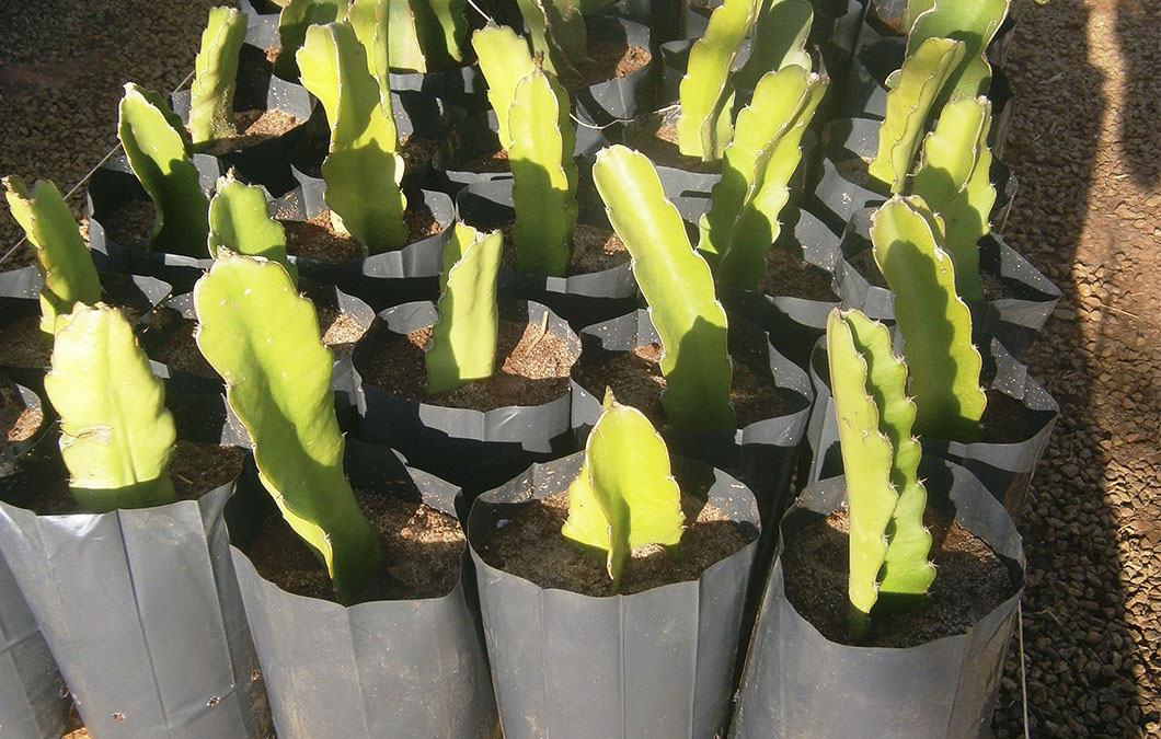 A maioria das mudas de pitaia hoje utilizadas são produzidas por meio de propagação vegetativa e obtidas pela técnica de estaquia, que é um método de propagação em que segmentos removidos de uma planta (denominados cladódios) sob condições adequadas emitem raízes, gerando uma nova planta com características idênticas àquela que lhe originou.