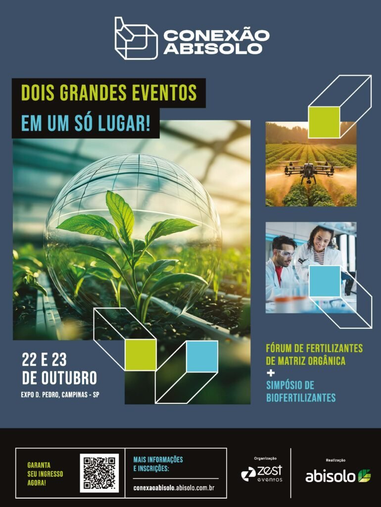 A Associação Brasileira das Indústrias de Tecnologia em Nutrição Vegetal (Abisolo) realiza, nos dias 22 e 23 de outubro, o Conexão Abisolo, no Expo D. Pedro, em Campinas (SP).