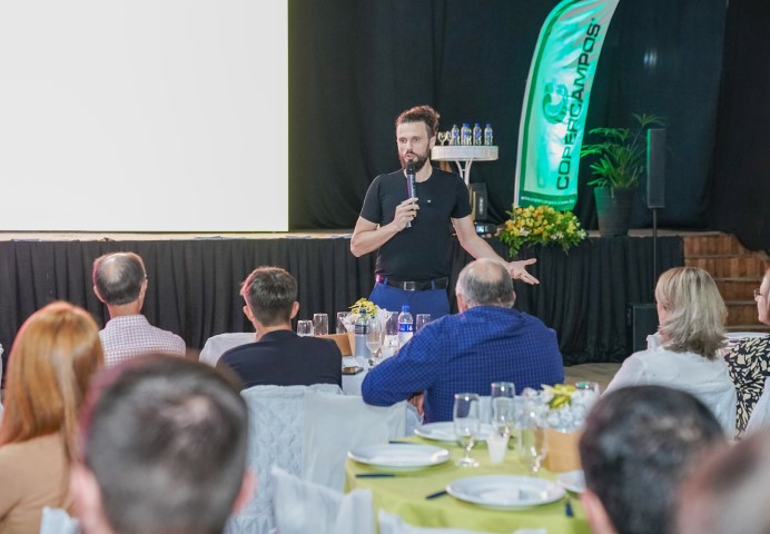 O evento contou ainda com uma palestra de Alexandre Weimer, empreendedor e investidor, que trouxe uma reflexão sobre as dinâmicas do mercado com o tema: “O mercado não vai mudar por você; ele muda o tempo todo por ele mesmo”. A apresentação proporcionou debates valiosos para os agricultores adaptarem suas estratégias frente às constantes transformações do setor.