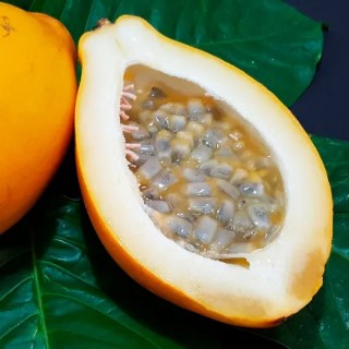 Os frutos maduros possuem casca amarela/alaranjada, pesam entre 120 a 300 gramas e são obovais (podem se assemelhar a um mamão papaia). Cultivado principalmente no Cerrado, a variedade tem potencial produtivo superior a 25 t/ha.
