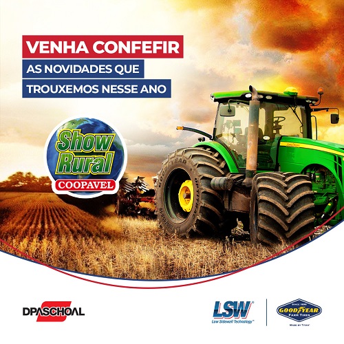 A DPaschoal, em parceria com a Titan, empresa especializada em pneus agrícolas da GoodYear Farm Tires, apresentam a tecnologia Low Sidewall – LSW no Show Rural Coopavel 2023, que será realizado entre os dias 06 e 10 de fevereiro de 2023, no Parque Tecnológico, em Cascavel, no Paraná.