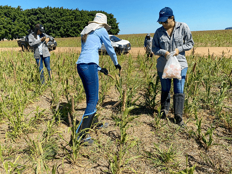 Uma equipe da Embrapa Milho e Sorgo de Sete Lagoas/MG visitou as lavouras de Luís Eduardo Magalhães, na Bahia, para coletar lagartas. Os insetos serão replicados para formar uma criação na unidade mineira, para fins de ensaios em laboratório com baculovírus e Bacillus thuringiensis. Ambos são o princípio de biopesticidas que têm se mostrado eficazes contra o complexo de lagartas, sobretudo a helicoverpa. No estado, os pesquisadores do laboratório de Controle Biológico da Embrapa foram recebidos pela equipe do Programa Fitossanitário da Associação Baiana dos Produtores de Algodão (Abapa). Algumas centenas de lagartas foram coletadas e as sobreviventes, após passarem por uma triagem, serão mantidas no laboratório mineiro.