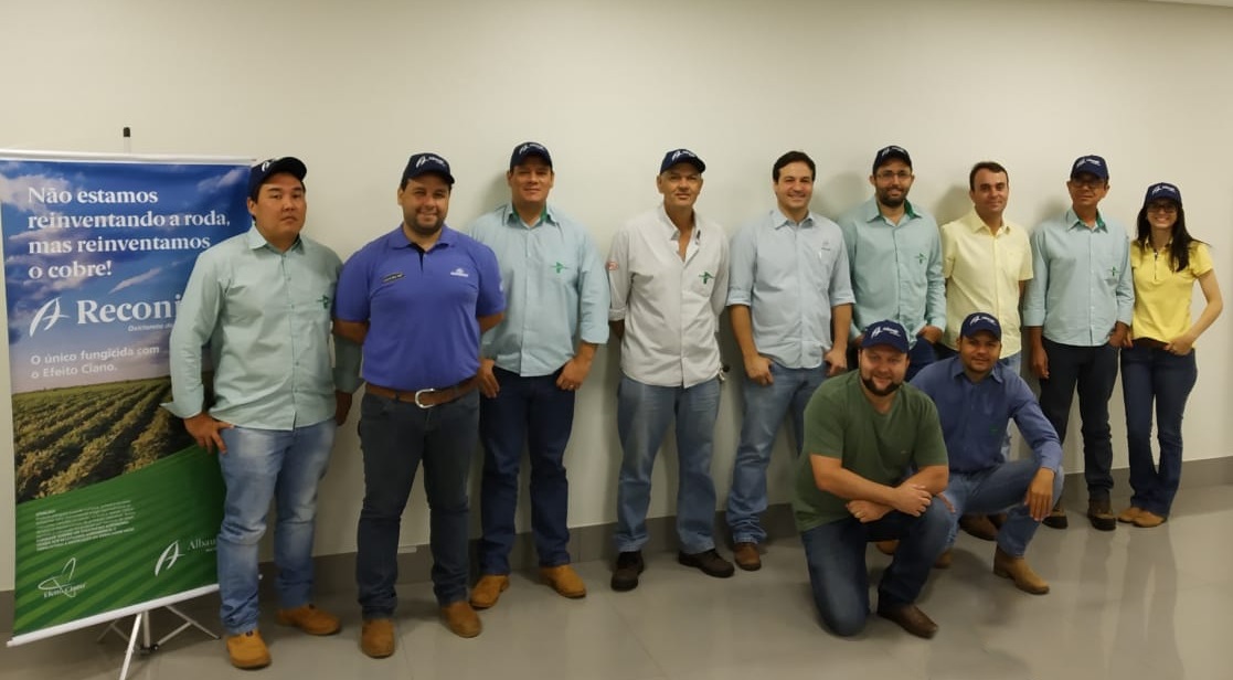 Marca forte do mercado de agroquímicos genéricos, a empresa de origem americana Albaugh realizou na última semana um evento com a equipe técnica da Protec Produtos Agrícolas, na unidade da revenda agrícola mineira da cidade de Uberlândia. O encontro teve objetivo de lançar o novo fungicida multissÃtio Reconil®. Formulado à base de cobre, o produto é indicado ao controle da doença Cercospora kikuchii na soja, e aplicado também integrado a sistemas de manejo das doenças de final de ciclo da oleaginosa.