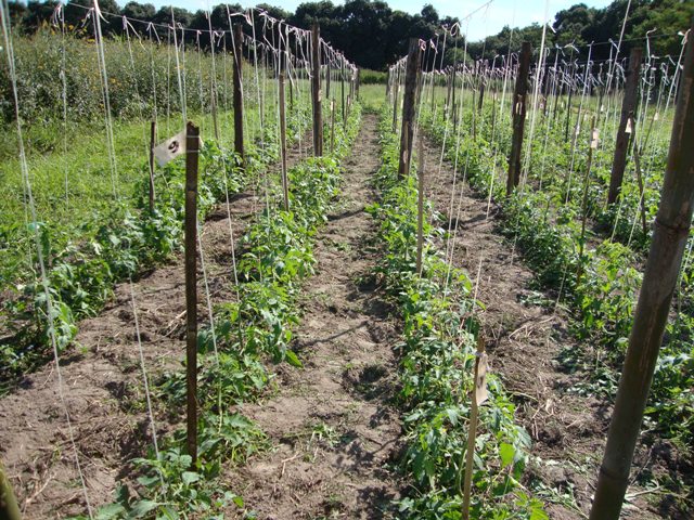 Outro item essencial é o enriquecimento do solo com matéria orgânica, seja por meio de aplicação de compostos orgânicos ou adubos verdes. Práticas que levam à diversificação do sistema, como rotação com outras culturas, uso de cercas vivas, manutenção de cobertura morta no solo e cultivo de outras espécies também são práticas importantes para o manejo orgânico do tomateiro.