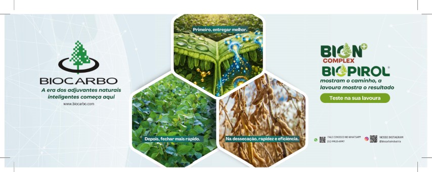 Já o BION+Complex atua como fonte de carbono orgânico ativo biodisponível, direcionado à ativação biológica da rizosfera, complementando a ação do Biopirol e ampliando os ganhos de eficiência no uso de fertilizantes e defensivos.
