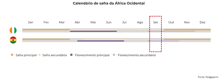 Para mais detalhes sobre o clima no mercado de cacau, acesse o Hedgepoint HUB para conferir os relatórios climáticos semanais da Costa do Marfim e de Gana.