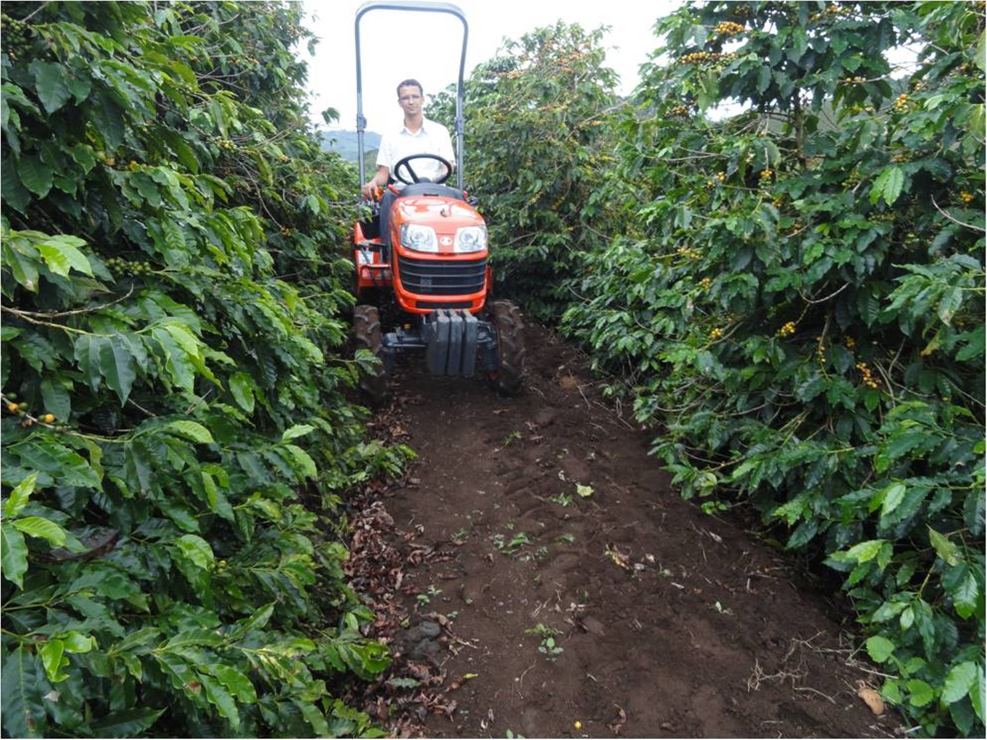 Seu manejo, em seguida, é feito com a passagem de tratores e equipamentos, usados para controle do mato, pulverizações, adubações, etc. Está sendo desenvolvida, também, uma adaptação de derriçadeira, para colheita por derriça mecanizada nessas áreas micro-terraceadas.