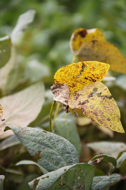 Sintomas da ferrugem asiática na lavoura de soja – Crédito Ana Maria Diniz