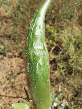 O pulgão alimenta-se da seiva da planta e também é vetor de viroses, o que agrava os problemas causados.