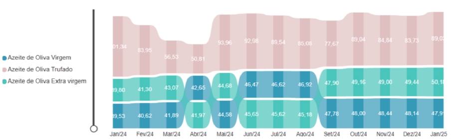 Variação de preço do azeite:
