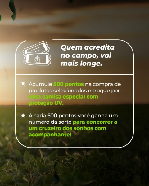 A cada aquisição de produtos participantes, o produtor acumula pontos que podem ser convertidos em recompensas imediatas e em chances de concorrer a uma premiação especial.