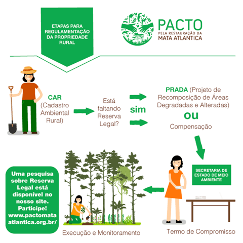 “O CAR é um diagnóstico ambiental da propriedade rural e é o primeiro passo para a regularização da propriedade rural. O segundo passo consiste na adesão (voluntária) dos proprietários rurais ao Programa de Regularização Ambiental (PRA) do seu Estado”, explica Aurélio Padovezi, do WRI Brasil e coordenador do grupo de Política Pública do Pacto pela Restauração da Mata Atlântica.