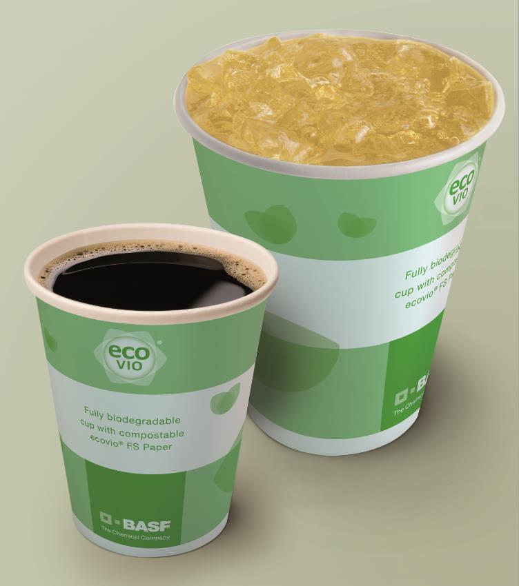 O uso do biopolímero compostável como revestimento dos copos e embalagens de papel, facilitaria a coleta de resíduos orgânicos em eventos públicos e nos restaurantes, por exemplo. Esse foi o foco do desenvolvimento do revestimento para papel com ecovio® PS 1606 um biopolímero de alta qualidade certificado de acordo com a norma de referência internacional para compostagem EN 13432. A regulamentação considera o material compostável quando, em um período de até 180 dias, cerca de 90% da massa do polímero é convertido em CO2 e água e 10% é convertido em biomassa, se colocado em condições de compostagem, ou seja, na presença de água, oxigênio, calor e microrganismos. As propriedades de barreira de migração do ecovio® tornam também mais seguro o uso de papel reciclado em aplicações alimentícias, ampliando a eficiência de recursos, reduzindo consumo de energia e melhorando a pegada de carbono do produto final.