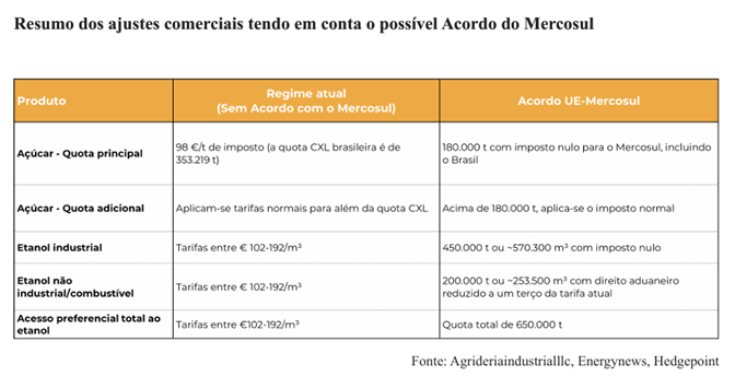 A UE, tem sido manchete no comércio de commodities, já que o acordo entre o grupo e o Mercosul parece estar chegando à fase final de aprovação. No entanto, a analista da Hedgepoint prevê que ele deve trazer apenas ajustes modestos nos fluxos comerciais de açúcar da região.