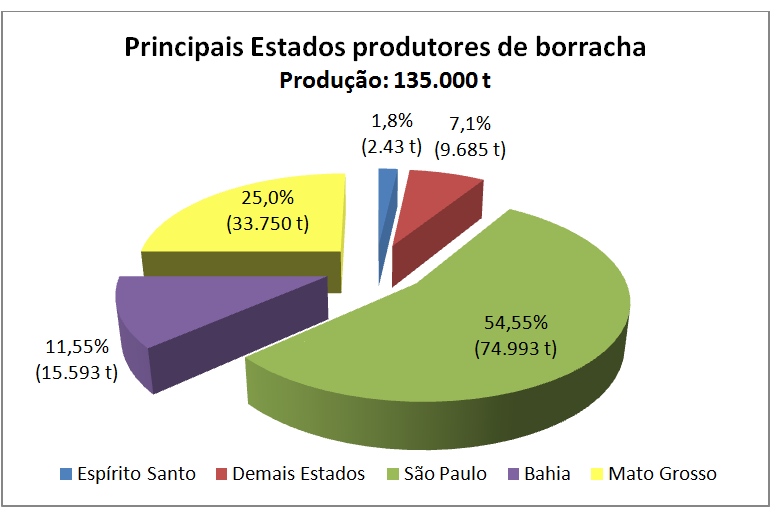 Estima-se que no Brasil exista 50 milhões de árvores de seringueira (Hevea brasiliensis) “em produção”, sendo que, destas, 22 milhões estão no Estado de São Paulo. Calcula-se hoje que este Estado possua mais de 50 milhões de pés de seringueira, com uma área plantada em torno de 100 mil ha, respondendo por mais de 50% da produção nacional de borracha natural, seguido por Mato Grosso 25% e Bahia 14%.
