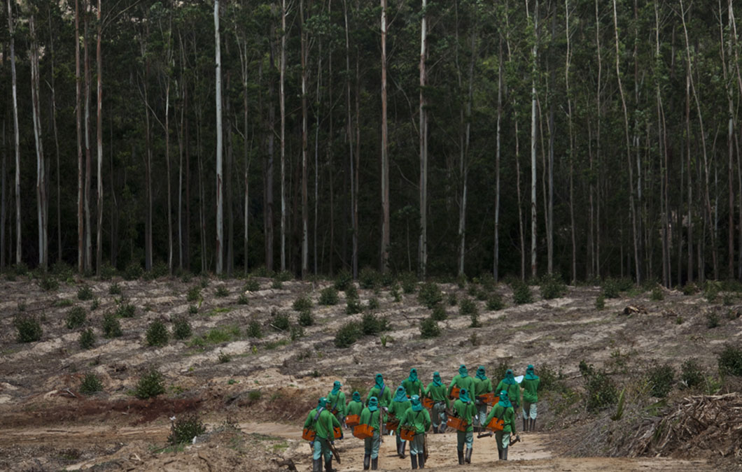 Some-se a esta condição a excelente adaptabilidade da gramínea trazida da África, presente de Norte a Sul do nosso País. Estamos falando da brachiária, também chamada de urocloa. As sementes destas plantas passam até sete anos sob a sombra do eucalipto sem germinar. Logo após a colheita, a incidência direta de raios solares sobre o solo estimula a germinação da gramínea, que povoa rapidamente o solo de maneira a competir com as futuras mudas.