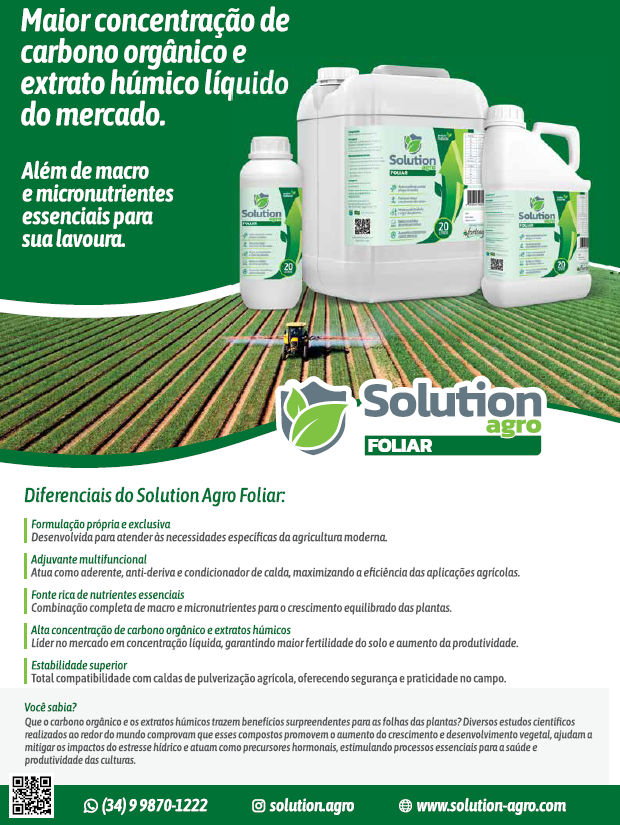 Pensando nisso, a empresa Solution Agro inova constantemente o manejo agrícola, com uma formulação exclusiva e sustentável que combina ciência, tecnologia e respeito ao meio ambiente. Voltado para a nutrição foliar, o produto é destaque no mercado por seus diferenciais únicos e benefícios comprovados para o desenvolvimento das culturas.