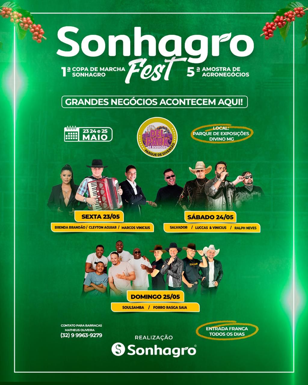 A Sonhagro Fest 2025 será a 5ª edição da amostra de agronegócio promovida pela maior franquia de crédito rural do país na cidade de Divino-MG. Onde visa valorizar o agronegócio como motor da economia nacional, criando um ambiente de troca de conhecimento, geração de oportunidades e fortalecimento de laços entre quem produz, vende, compra e consome.