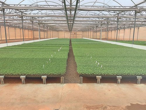 A estrutura do viveiro é feita de ferro galvanizado, com telas de proteção lateral antiafídeo e cobertura superior com plástico de alta qualidade, que difunde a luz solar. Os sistemas, como a fertirrigação, são automatizados e oferecem uma maior padronização.