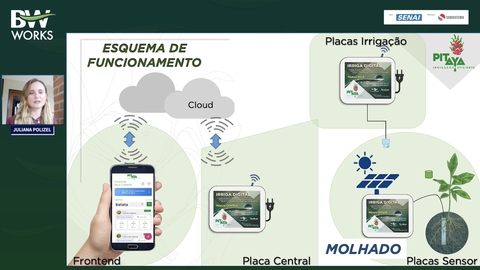 “O sistema atende cada cultura de acordo com suas necessidades, pois os sensores fornecem dados do solo, que dão mais clareza e exatidão sobre a necessidade de irrigação da planta. Os usuários podem acessar diariamente as informações operacionais pelo celular”, explicou Juliana Polizel, cofundadora da Pitaya Irrigação, durante o BW Works SENAI – Empresas Inovadoras, uma iniciativa do Movimento BW, com o apoio do Serviço Nacional de Aprendizagem Industrial (SENAI), transmitido no dia 14 de junho, com apresentação de Luís Gustavo Delmont, especialista em desenvolvimento industrial no SENAI Nacional.