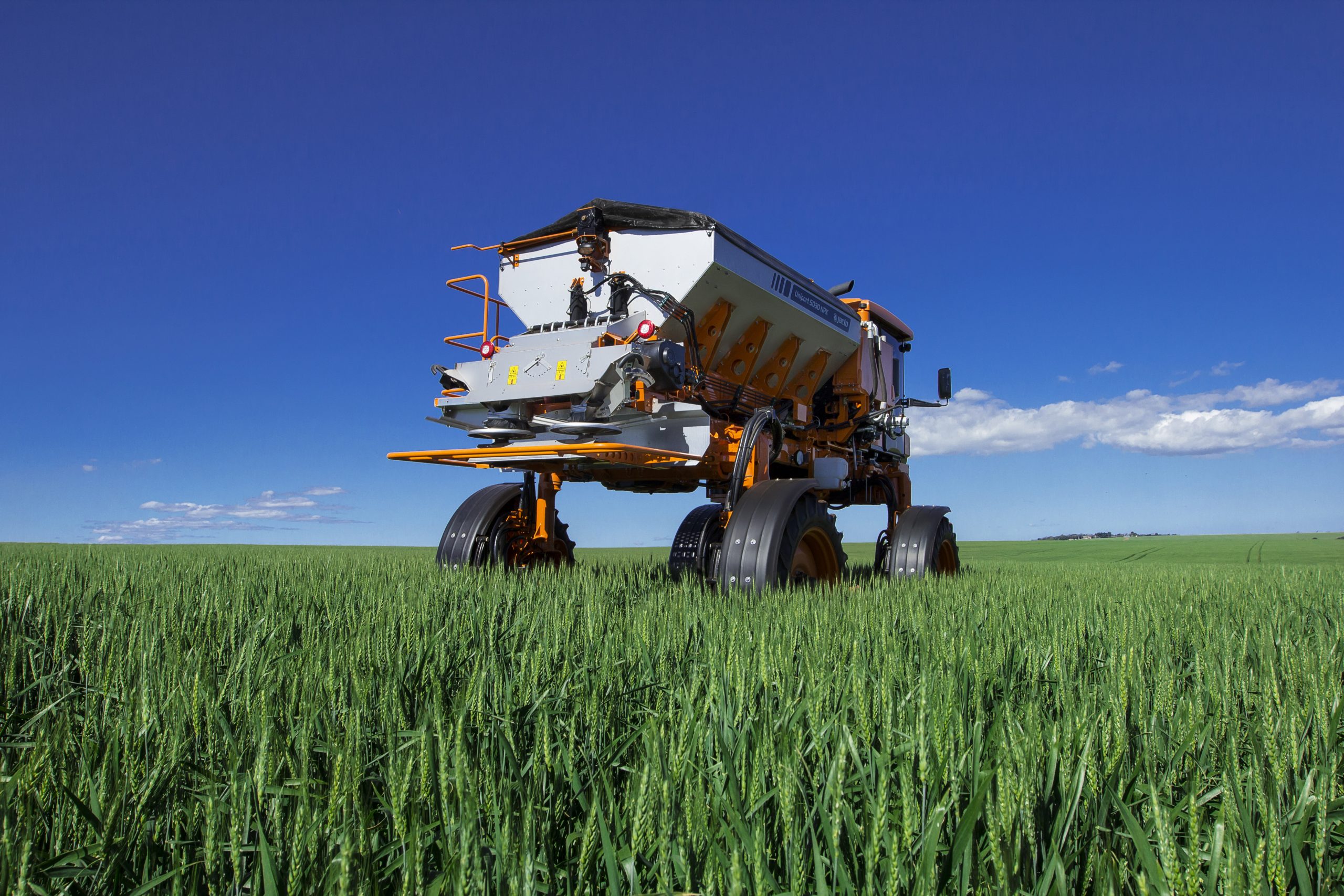 A Uniport 5030 NPK é uma adubadora automotriz com reservatório de 5.000 kg de capacidade e faixa de aplicação de até 50 metros para fertilizantes granulados e 12 metros para produtos em pó. Possui motor de 243 cv, transmissão 4X4 independente e inteligente, suspensão pneumática independente e vão-livre de 1,5m. O motor diesel tem controle automático de rotação e é integrado com a transmissão possibilitando redução no consumo de combustível. Possui o direcional Unitrack, que permite manobras mais rápidas e proporciona maior rendimento operacional, reduzindo o amassamento nas manobras.