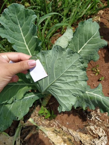 As vespas são comercializadas em cartelas destacáveis e cada ‘mini-cartela’ deve ser distribuída na área respeitando a distância de ± 13 metros (Figura 1). A cartela de liberação pode ser fixada na folha da cultura com o auxílio de um grampeador de papel, ou distribuída de forma avulsa. Ao usar o grampeador, deve-se inserir o grampo na extremidade da caixa de liberação para evitar danos aos parasitoides. A fixação das caixas de liberação nas plantas proporciona proteção e facilita o recolhimento posterior.