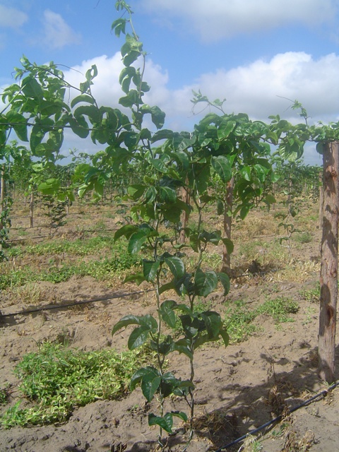 O plantio de capim Napier como quebra-vento três a quatro meses antes do plantio das mudas de maracujá é extremamente importante, a fim de se evitar ferimentos nas folhas e quebra de ramos novos.