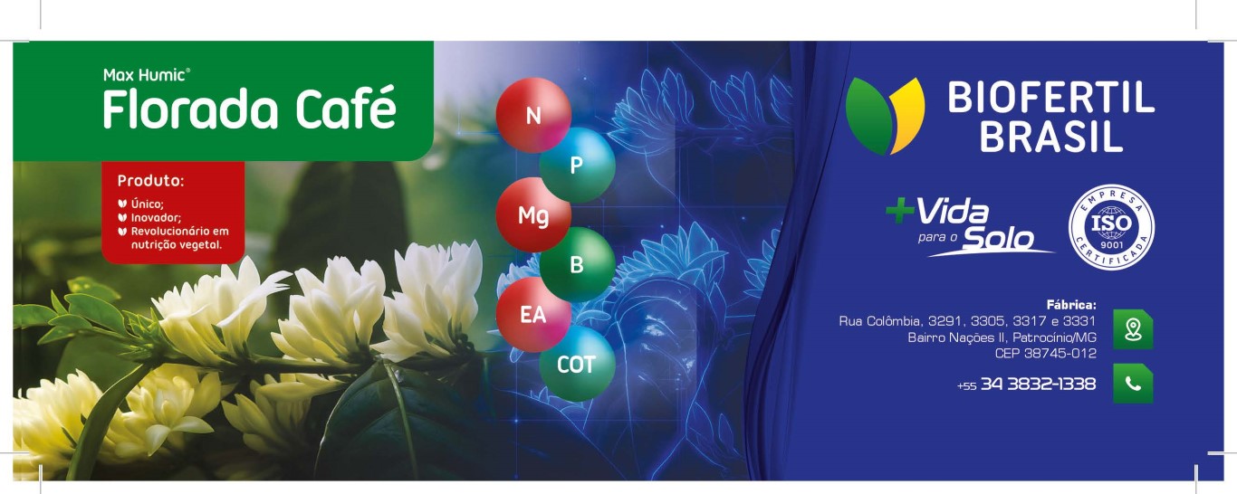 A tecnologia Max Humic® Florada é um fertilizante organomineral fluido de solo, classe A, tendo em sua composição 21% de fósforo, como também nitrogênio, magnésio, boro, extrato de algas e 3% carbono orgânico, que visa fornecimento de nutrientes de forma eficiente e no período ideal para a planta (Biofertil Brasil, 2025).