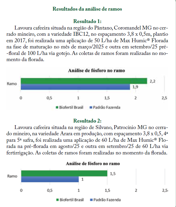 O posicionamento no período pré-floral do cafeeiro da tecnologia Max Humic® Florada Café resulta em um melhor fornecimento e redistribuição de nutrientes, em especial o fósforo.
