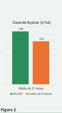 Em cana-de-açúcar, comercializada sob a marca H2COPLA desde 2018 pela Coplacana, apresenta resultados consistentes de incrementos de 23,2% (média de 21 locais), quando aplicado no vegetativo, conforme Figura 2.