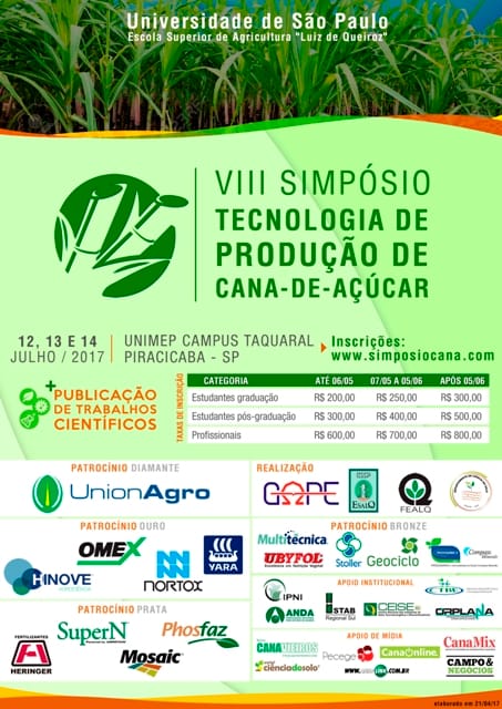 As inscrições para o VIII Simpósio Tecnologia de Produção de Cana-de-Açúcar