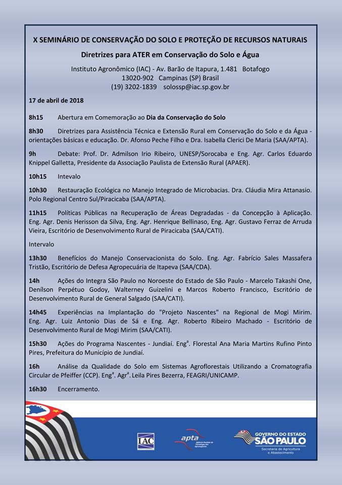 Acontece amanhã, 17 de abril, o X Seminário de Conservação do Solo e de Recursos Naturais na cidade de Campinas ” SP.